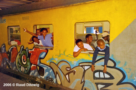 Cape Town (Afrikaans Kaapstad) - 3.5 million inhabitants - in the province of Western Cape at the southwestern tip of Africa Metrorail Network - suburban railway, operated by Passenger Rail Agency of South Africa (PRASA) - 4 lines radiating from Cape Town city centre, with the Northern and Central Lines serving various branches - 4-6 train per hour during peak times, every 30-90 minutes during off-peak daytime service - 1067 mm - narrow gauge - electrified at 3000 V dc with overhead wire - tracks towards Wellington shared with infrequent long-distance services