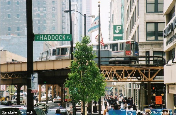 Chicago has 2.7 million inhabitants (some 9 million in the metropolitan area) and is the third largest metropolitan area in the USA (after New York and Los Angeles), situated on the western shore of Lake Michigan in the state of Illinois. Chicago's metro is known as the 'L' as most of its network is elevated. Some stretches of today's system date back to the end of the 19th century when Chicago followed New York's example to construct elevated rail lines. Whereas New York started early in the 20th century to put all elevated lines in Manhattan underground, Chicago maintains many of its original routes. All lines spread out from the city centre where some of them form the famous elevated Loop, now one of the city's landmarks. Two lines, the Blue Line and the Red Line cross the city centre north-south in a subway. The entire network is 169 km long, with 18 km lying underground. Large parts of the Blue Line and the southern leg of the Red Line run in the medians of expressways. Outer sections of the Brown, Pink and Purple Line, as well as the Yellow Line, run at grade with some level crossings. The 'L' is operated by CTA (Chicago Transit Authority). Both airports are served by CTA trains, O'Hare Airport by the Blue Line (45 min to city centre) and Midway Airport by the Orange Line (30 min to city centre).