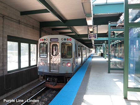 Linden - Howard (- Loop): 6.4 km (+ 19.7 km) - 9 (+ 17) stations The Purple