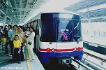 consists of two lines: Track gauge is 1435 mm and power supply is via third rail at 750 V DC. The original 3-car trains were 65 m long (a fourth car was added to all trains between 2012 and 2013), air-conditioned and run at an average speed of 35 kph. Saphan Taksin station on the Silom Line was only planned as a temporary station, but as it offers an excellent connection to the Water Buses on Chao Phraya River, it remains open after the extension to Wongwian Yai, although the single-track section at Saphan Taksin station limits the capacity on the Silom Line. 05 Dec 1999: