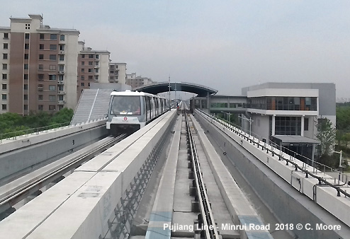 Cheng Road - South Ling Yan Road Like Line 5, also referred to as 'Light Railway' with 80 m long platforms, and operated by Shanghai Modern Rail Transit Co. Ltd. (SMRT). It runs parallel to the Huang Pu River on the Pudong side, from Wai Gao Qiao in the north to San Lin City in the south. |