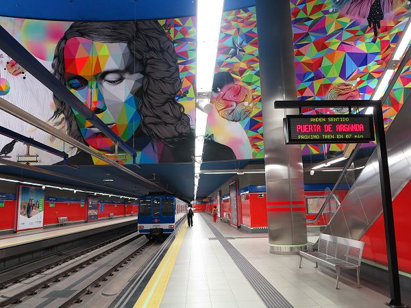 Line 9 is actually operated as two separate lines, the proper Line 9 from Paco de Lucía to Puerta de Arganda, and Line 9b from Puerta de Arganda to Arganda del Rey. The latter is operated with 3-car trains at longer intervals, so all passengers have to change at Puerta de Arganda. Line 9b runs almost entirely on the surface, through largely unpopulated areas, with underground stations at Rivas Urbanizaciones and Arganda del Rey.