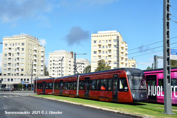 Tampere (220,000 inh.), some 180 km north of Helsinki Tram Opened 09 Aug 2021: Line 1