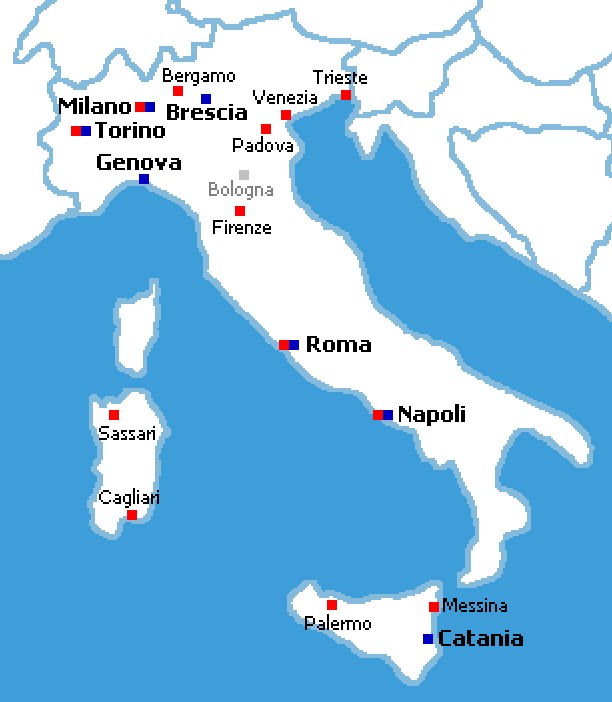 Brescia | Catania | Genoa | Milan | Naples | Perugia | Rome | Turin